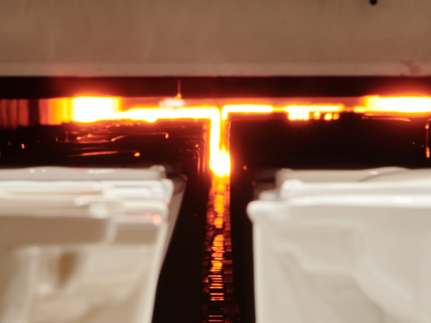 Firing a piece of sanitaryware. Each piece is uniformly fired through precise computer control.
