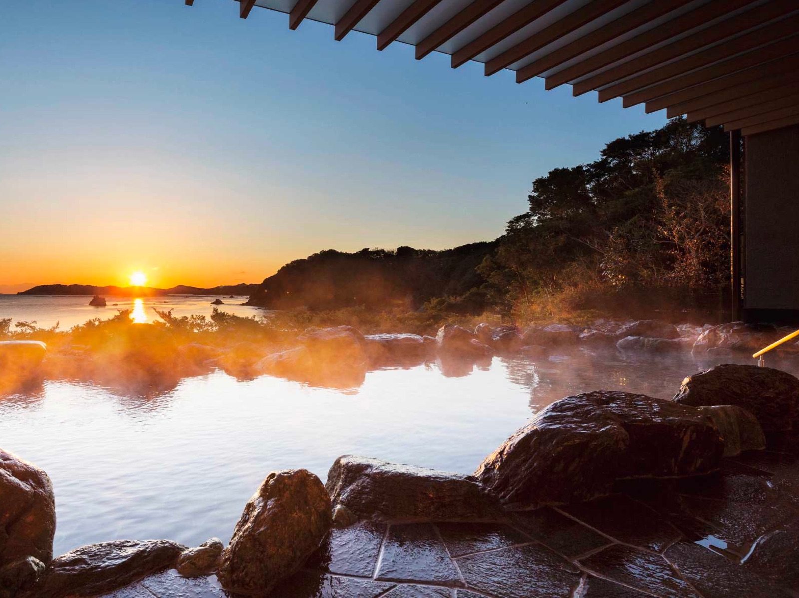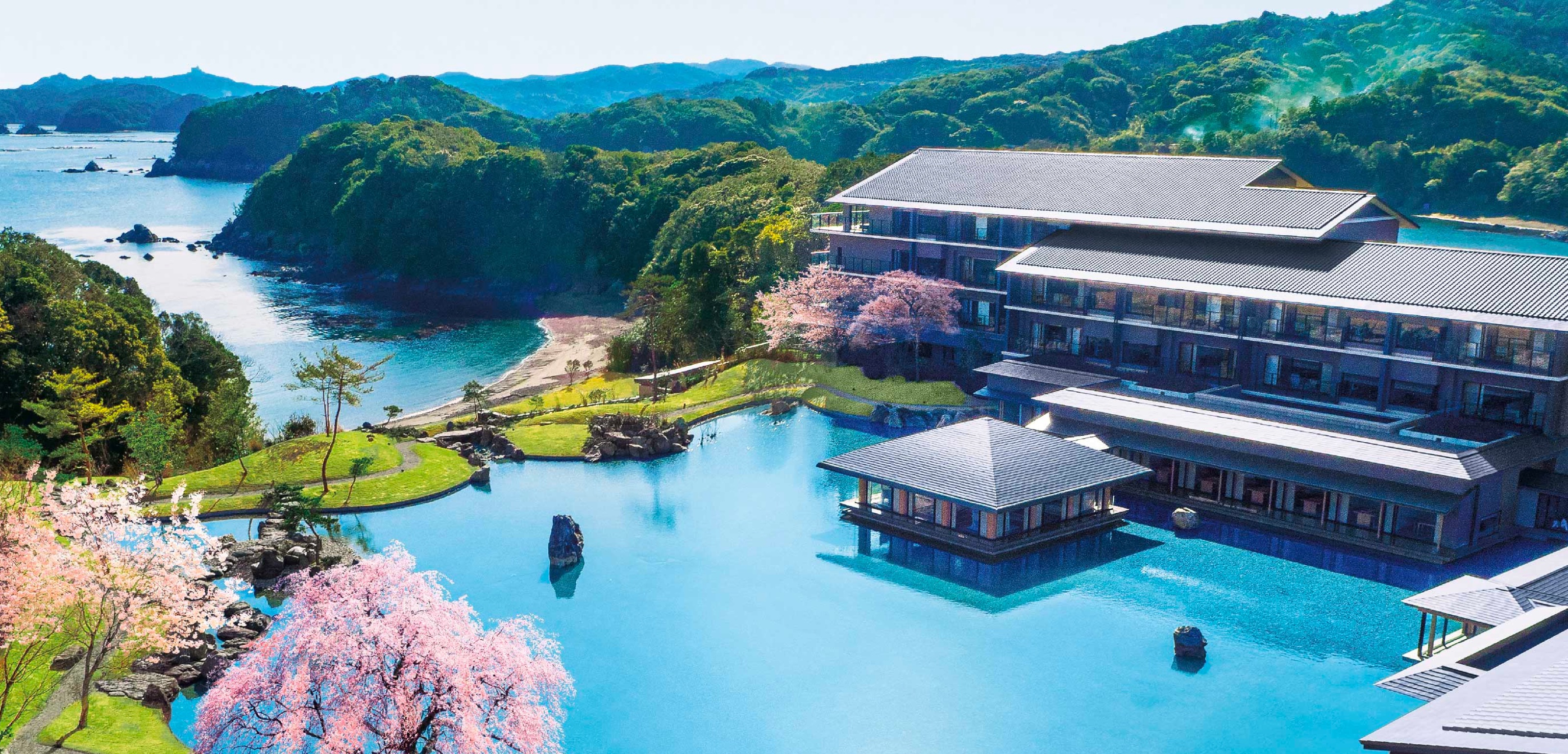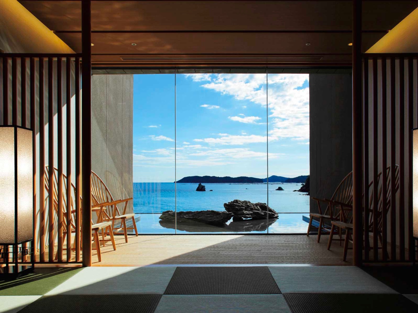 A recent addition to Shima Peninsula, the Toba Bettei resort’s design is filled with homages to time-honored Japanese style. Low-set furnishings, minimalist lines, soft lighting, and repeating rectangles all contribute to a nostalgic look while the color scheme pairs customary Japanese hues with metallic lacquers and foils.